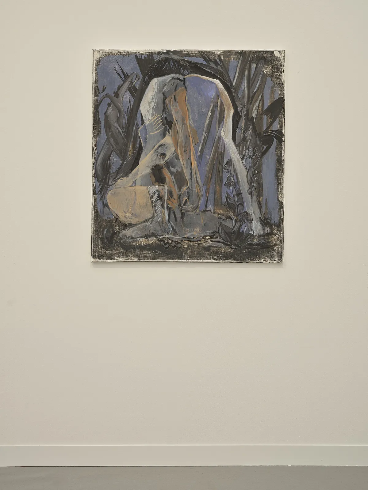 In her paintings, Aghbashian uses photos for reference, which are usually of misread visual information, a projection of her mind’s eye. They appear to be close up of figures, or characters on a stage, where things happen, or are presented. From a plethora of reiterated fragments, the painting pushes and pulls together. Ultimately her paintings live in historical atemporality, and is a place of open possibilities, where things shift and coexist.